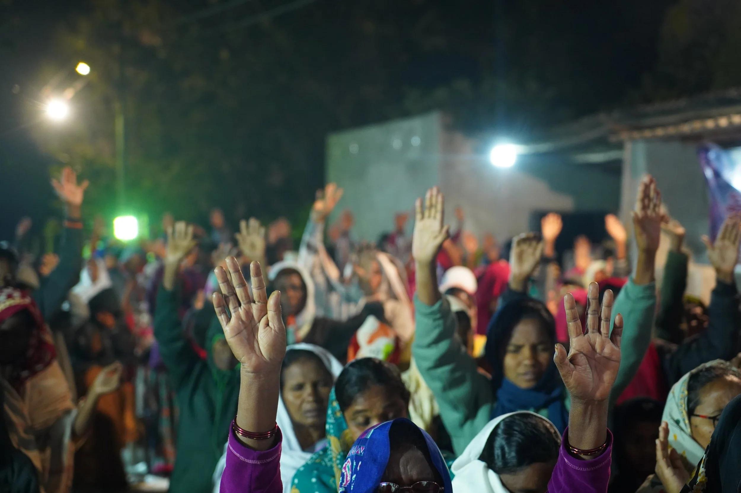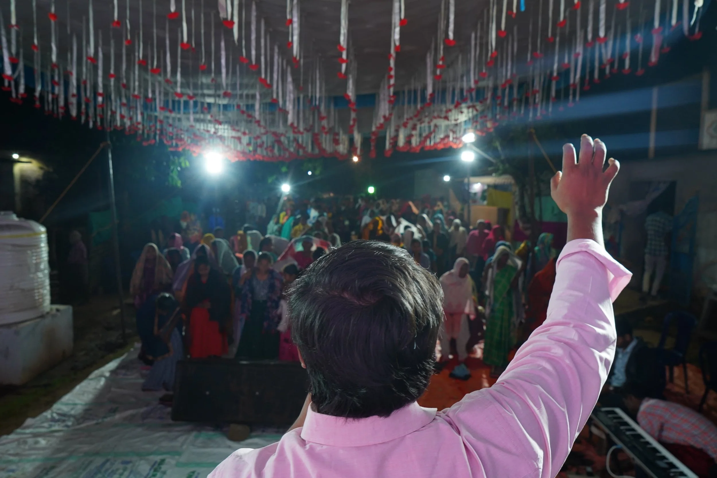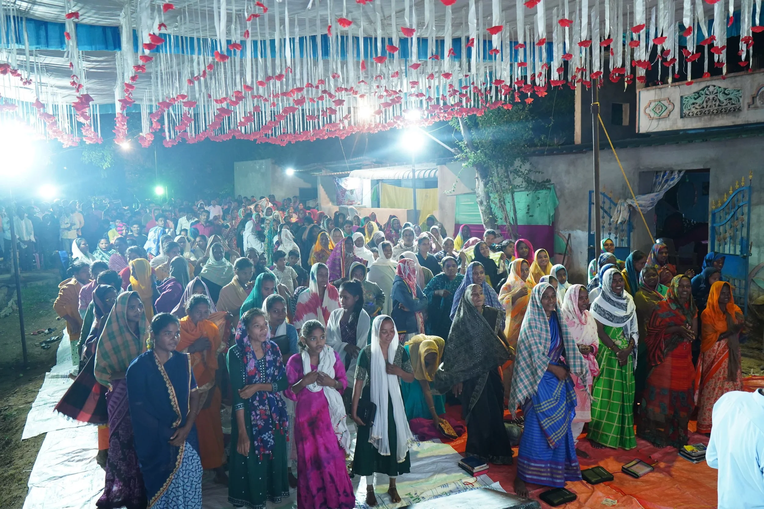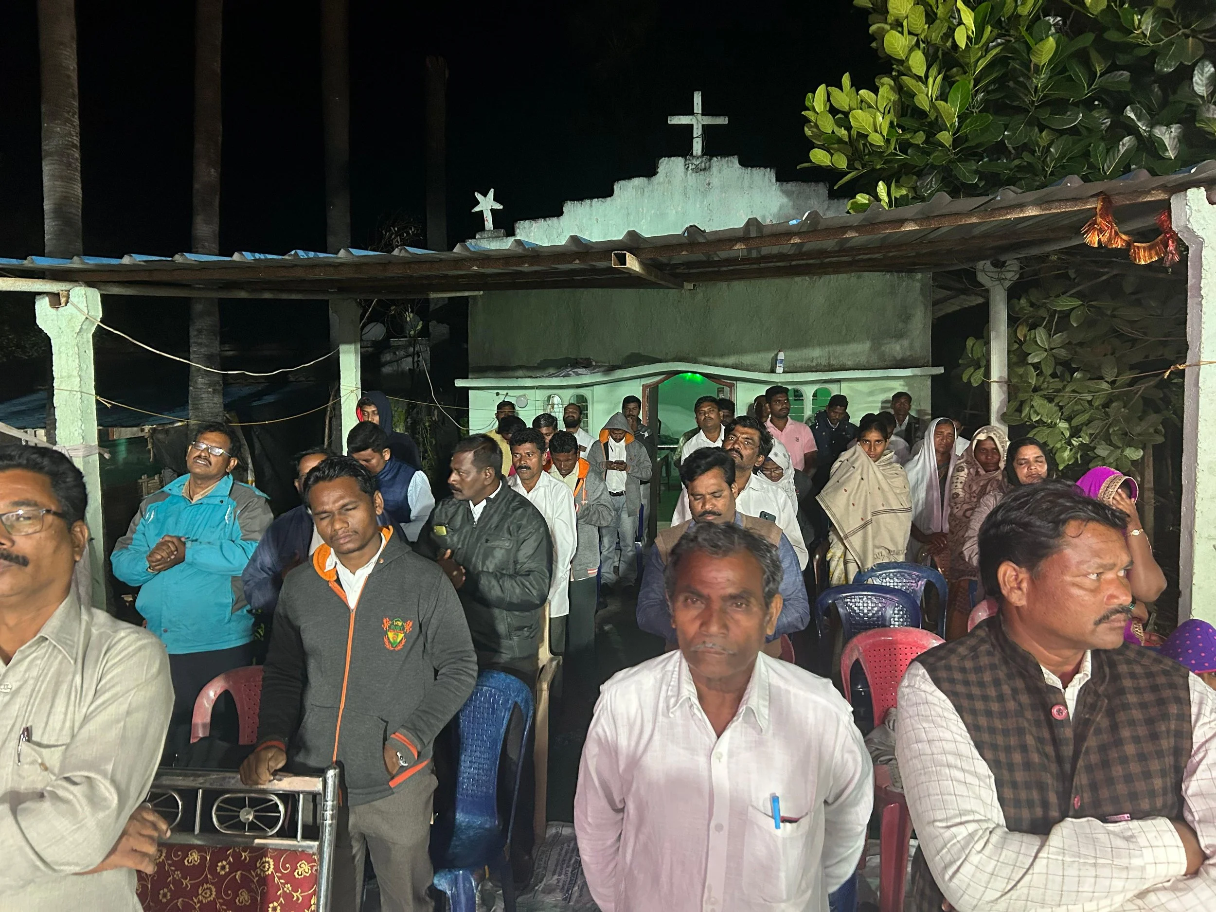 Over the past week this part of India experienced massive rains ⛈️, rendering the ground at the original meeting place unusable (like a muddy swamp). This forced the pastors involved hosting the meeting to find a secondary location. Things were tight, and chairs were out in different “wings” to accommodate the crowd — but people came from the surrounding region via autorickshaws with great delight to watch some “American movie” that had been advertised.